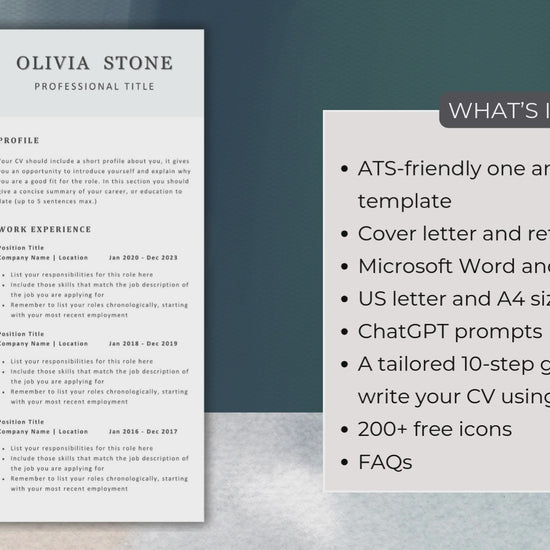 - Step-by-Step CV Writing Guide: Our clear, easy-to-follow guide walks you through each section of your CV, giving you the support and structure you need to write with confidence.